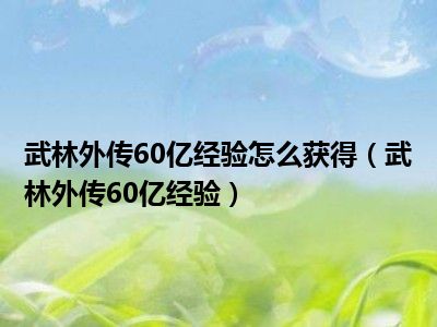 武林外传60亿经验怎么获得(武林外传60亿经验)
