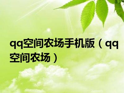 qq空间农场手机版(qq空间农场)