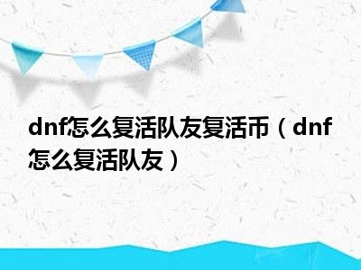 dnf怎么复活队友复活币(dnf怎么复活队友)