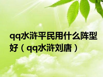 大家好,小陆来为大家解答以上的问题。qq水浒平民用什么阵型好,qq水浒刘唐这个很多人还不知道,现在让我们一起来看看吧!
