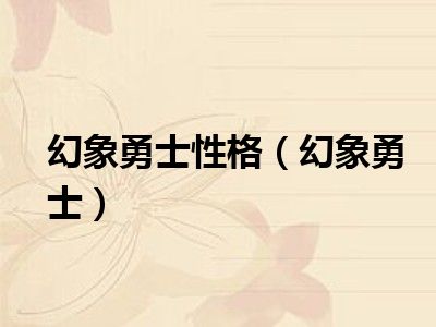 大家好,小陆来为大家解答以上的问题。幻象勇士性格,幻象勇士这个很多人还不知道,现在让我们一起来看看吧!