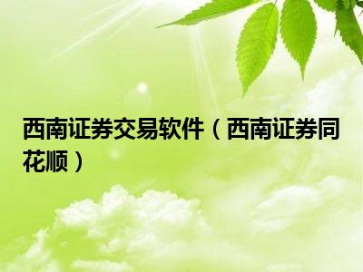 大家好,小陆来为大家解答以上的问题。西南证券交易软件,西南证券同花顺这个很多人还不知道,现在让我们一起来看看吧!