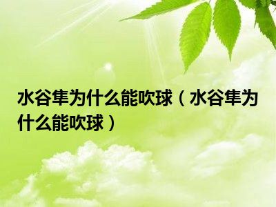 水谷隼为什么能吹球(水谷隼为什么能吹球)