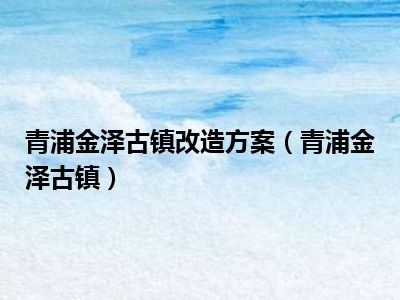 青浦金泽古镇改造方案(青浦金泽古镇)