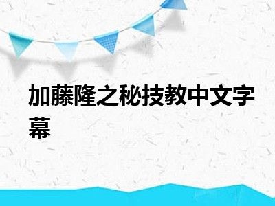 大家好,小陆来为大家解答以上的问题。加藤隆之秘技教中文字幕这个很多人还不知道,现在让我们一起来看看吧!