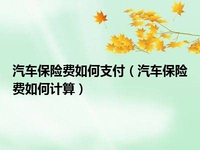 大家好,小陆来为大家解答以上的问题。汽车保险费如何支付,汽车保险费如何计算这个很多人还不知道,现在让我们一起来看看吧!