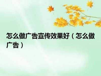 大家好,小陆来为大家解答以上的问题。怎么做广告宣传效果好,怎么做广告这个很多人还不知道,现在让我们一起来看看吧!