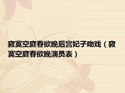 大家好,小陆来为大家解答以上的问题。寂寞空庭春欲晚后宫妃子吻戏,寂寞空庭春欲晚演员表这个很多人还不知道,现在让我们一起来看看吧!