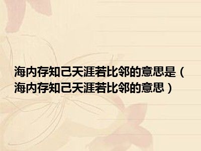 海内存知己天涯若比邻的意思是(海内存知己天涯若比邻的意思)