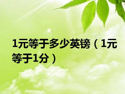 1元等于多少英镑(1元等于1分)