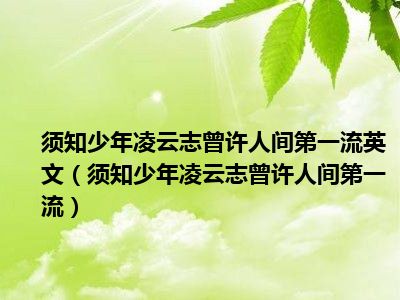 须知少年凌云志曾许人间第一流英文(须知少年凌云志曾许人间第一流)
