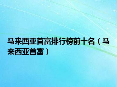 大家好,小陆来为大家解答以上的问题。马来西亚首富排行榜前十名,马来西亚首富这个很多人还不知道,现在让我们一起来看看吧!
