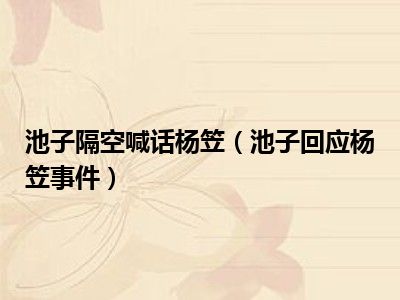 池子隔空喊话杨笠(池子回应杨笠事件)