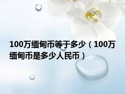 100万缅甸币等于多少(100万缅甸币是多少人民币)