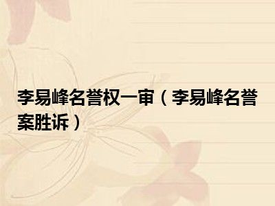 李易峰名誉权一审(李易峰名誉案胜诉)