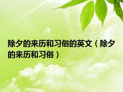 除夕的来历和习俗的英文(除夕的来历和习俗)
