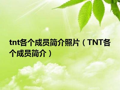 大家好,小陆来为大家解答以上的问题。tnt各个成员简介照片,TNT各个成员简介这个很多人还不知道,现在让我们一起来看看吧!