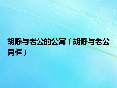 大家好,小陆来为大家解答以上的问题。胡静与老公的公寓,胡静与老公同框这个很多人还不知道,现在让我们一起来看看吧!
