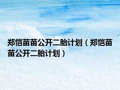 郑恺苗苗公开二胎计划(郑恺苗苗公开二胎计划)