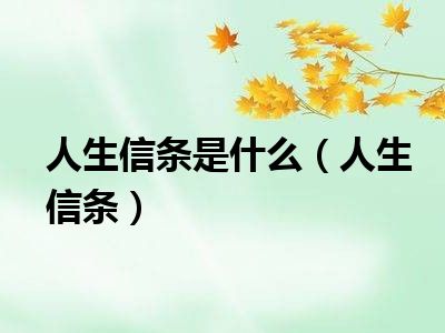 1、人生信条是说做人的原则,一个人的人生信条是他在生命过程中,不断的积累经验和总结教训的结果形成了一套相对固定的处事原则,坚信的一种信念,就是人生信条。