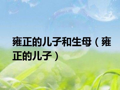 大家好,小陆来为大家解答以上的问题。雍正的儿子和生母,雍正的儿子这个很多人还不知道,现在让我们一起来看看吧!