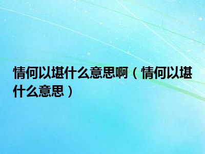 1、情何以堪意思: 感情又怎么能承受这种打击呢? 在不同的语境解释略有不同。