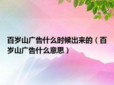 百岁山广告什么时候出来的(百岁山广告什么意思)