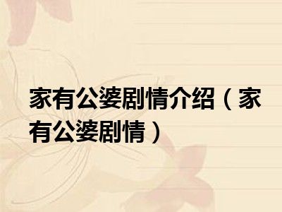 大家好,小陆来为大家解答以上的问题。家有公婆剧情介绍,家有公婆剧情这个很多人还不知道,现在让我们一起来看看吧!