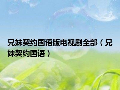兄妹契约国语版电视剧全部(兄妹契约国语)