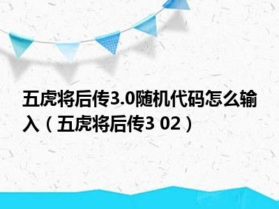 五虎将后传3.0随机代码怎么输入(五虎将后传3 02)
