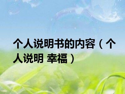 大家好,小陆来为大家解答以上的问题。个人说明书的内容,个人说明 幸福这个很多人还不知道,现在让我们一起来看看吧!