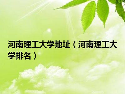大家好,小陆来为大家解答以上的问题。河南理工大学地址,河南理工大学排名这个很多人还不知道,现在让我们一起来看看吧!