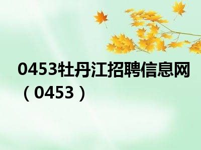 大家好,小陆来为大家解答以上的问题。0453牡丹江招聘信息网,0453这个很多人还不知道,现在让我们一起来看看吧!
