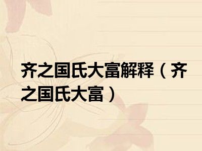 大家好,小陆来为大家解答以上的问题。齐之国氏大富解释,齐之国氏大富这个很多人还不知道,现在让我们一起来看看吧!