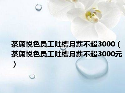 茶颜悦色员工吐槽月薪不超3000(茶颜悦色员工吐槽月薪不超3000元)