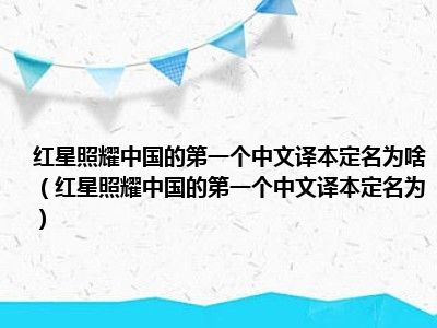红星照耀中国的第一个中文译本定名为啥(红星照耀中国的第一个中文译本定名为)