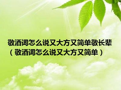 敬酒词怎么说又大方又简单敬长辈(敬酒词怎么说又大方又简单)