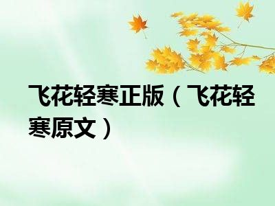 大家好,小陆来为大家解答以上的问题。飞花轻寒正版,飞花轻寒原文这个很多人还不知道,现在让我们一起来看看吧!