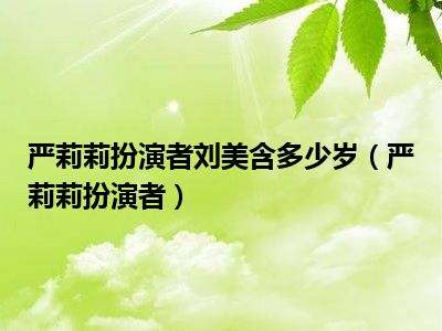 大家好,小陆来为大家解答以上的问题。严莉莉扮演者刘美含多少岁,严莉莉扮演者这个很多人还不知道,现在让我们一起来看看吧!