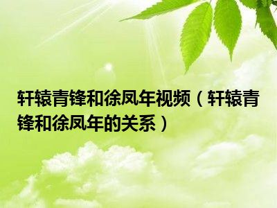 轩辕青锋和徐凤年视频(轩辕青锋和徐凤年的关系)