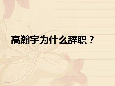大家好,小陆来为大家解答以上的问题。高瀚宇为什么辞职?这个很多人还不知道,现在让我们一起来看看吧!