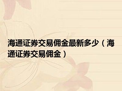 海通证券交易佣金最新多少(海通证券交易佣金)