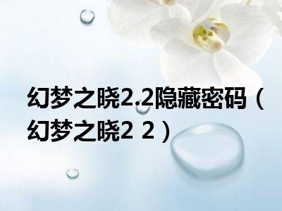 幻梦之晓2.2隐藏密码(幻梦之晓2 2)