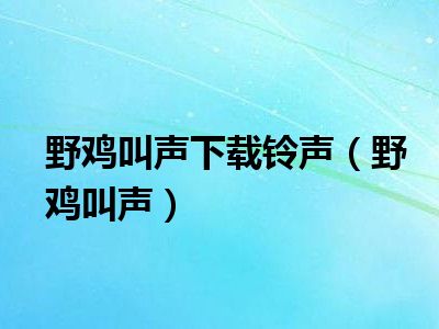 大家好,小陆来为大家解答以上的问题。野鸡叫声下载铃声,野鸡叫声这个很多人还不知道,现在让我们一起来看看吧!