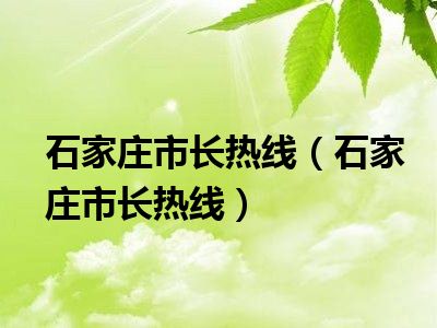 大家好,小陆来为大家解答以上的问题。石家庄市长热线,石家庄市长热线这个很多人还不知道,现在让我们一起来看看吧!
