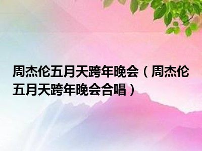 2、一、周杰伦与五月天跨年晚会合唱五月天周杰伦真的是,我们这些90后的回忆和青春就是因为有他们的存在,我们的青春才显得不那么频繁,每一个时代里面都有一些比较有趣的人好听的歌存在,而周杰伦和五月天他们就是我们这代人的回忆,真的好久都没有通过上一次合体,已经过去了很多年,有人也说了想要让周杰伦出来,还得请五月天来帮忙。