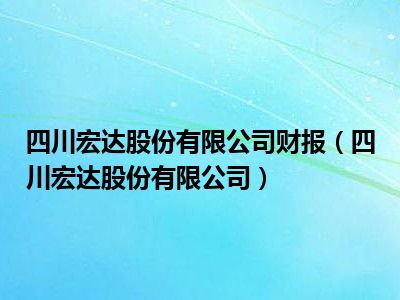 四川宏达股份有限公司财报(四川宏达股份有限公司)