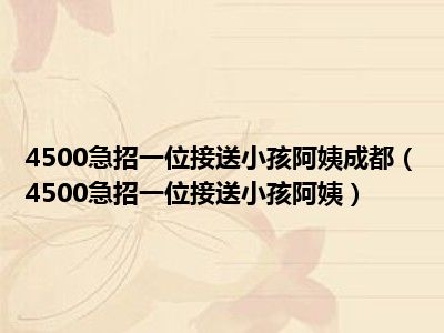 4500急招一位接送小孩阿姨成都(4500急招一位接送小孩阿姨)