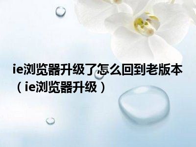 ie浏览器升级了怎么回到老版本(ie浏览器升级)