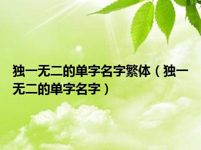 大家好,小陆来为大家解答以上的问题。独一无二的单字名字繁体,独一无二的单字名字这个很多人还不知道,现在让我们一起来看看吧!